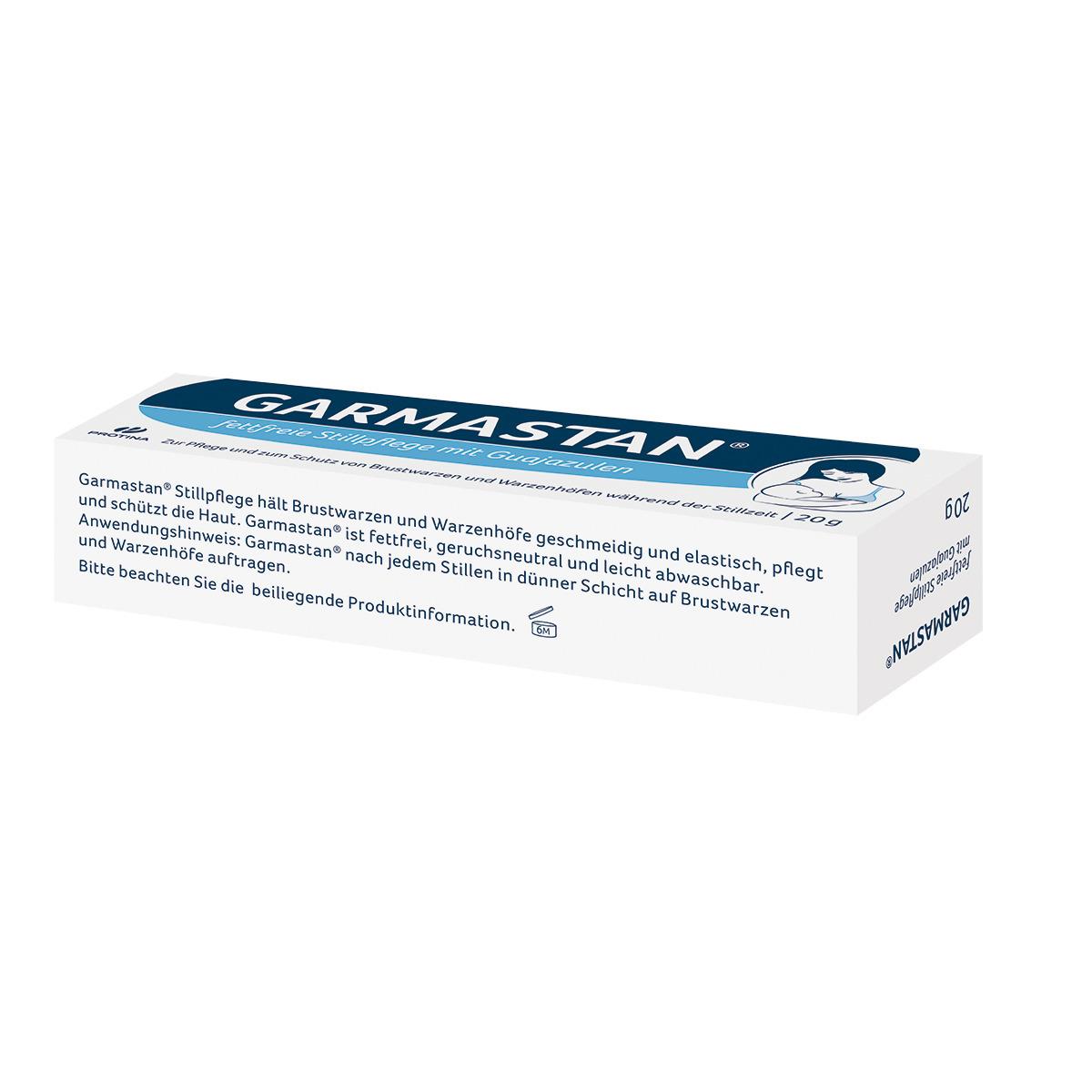 In Garmastan® Stillpflege wird das langjährige Wissen der Einwohner Nord- und Südamerikas genutzt. Dort ist die pflegende und entzündungshemmende Wirkung der Inhaltsstoffe des Guajakbaumes seit Langem bekannt: Garmastan® Stillpflege enthält blaues Guajazulen, wie es in der Natur im ätherischen Öl des Guajakbaumes vorkommt. Bei der Garmastan® Brustwarzensalbe handelt es sich um eine hochwertige Stillpflege von Protina Pharmazeutische GmbH – ein Qualitätsprodukt aus Deutschland seit über 70 Jahren. Millionen Mütter aus der ganzen Welt vertrauen Garmastan® seit Generationen.