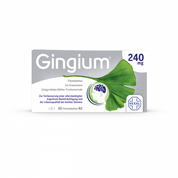 Gingium® extra 240 mg wird angewendet Zur symptomatischen Behandlung von hirnorganisch bedingten geistigen Leistungseinbußen. Die Anwendung erfolgt im Rahmen eines therapeutischen Gesamtkonzeptes bei fortschreitender Abnahme bzw. Verlust erworbener geistiger Fähigkeiten (dementielles Syndrom) mit den Hauptbeschwerden: Gedächtnisstörungen, Konzentrationsstörungen, Niedergeschlagenheit, Schwindel, Ohrensausen, Kopfschmerzen.