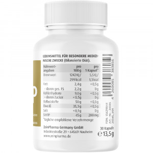 · Eine Kapsel enthält 200mg 5-HTP, das auf natürliche Weise mittels Extraktion gewonnen wird