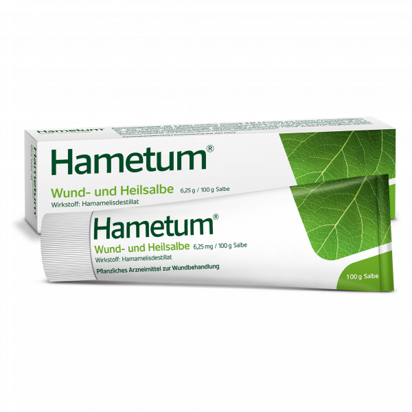 Hametum® Wund- und Heilsalbe eignet sich zur Behandlung kleinerer Verletzungen wie Schürf- und Schnittwunden, gerade auch bei anspruchsvoller reifer Haut. Dafür sorgt der pflanzliche Wirkstoff aus Hamamelis.
