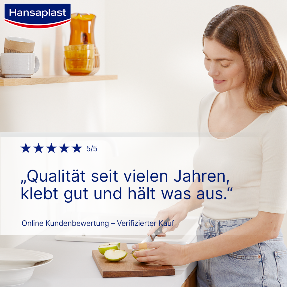 Das Hansaplast Bacteria Shield schützt vor Schmutz und 99% der Bakterien. Zudem ist das Hansaplast Pflaster widerstandsfähig und atmungsaktiv, wodurch eine ungestörte Wundheilung ermöglicht wird. Das Material bietet außerdem eine extra starke Klebkraft und so haftet das Pflaster zuverlässig auf der Haut.