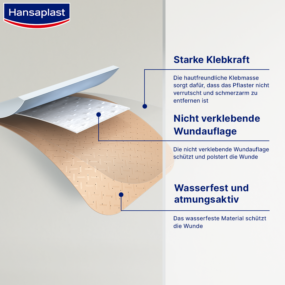 - Die sichere Klebkraft lässt das Pflaster nicht verrutschen.