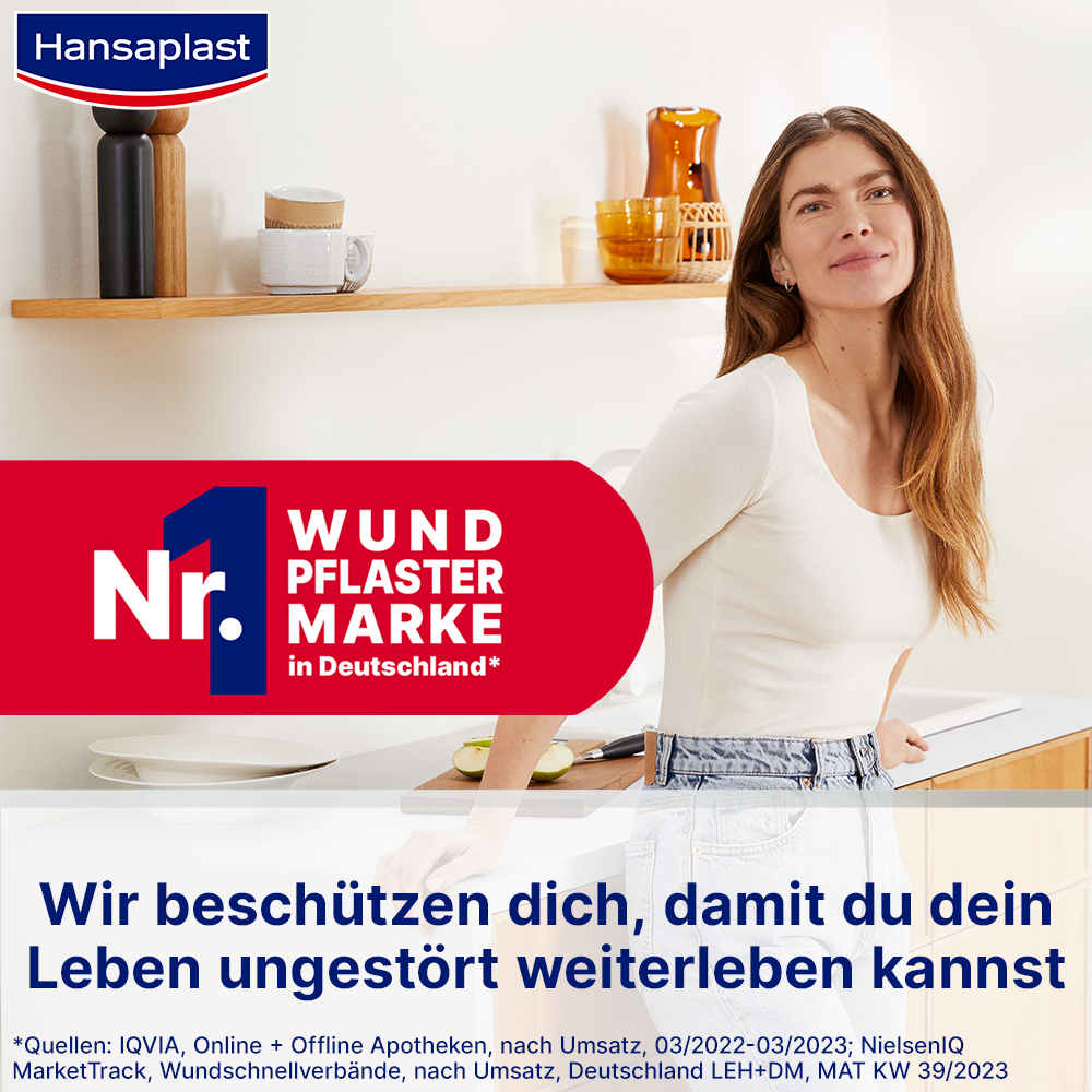 Der zweite Schritt ist der Schutz der Wunde vor äußeren Einflüssen wie Schmutz und Bakterien, um eine ungestörte Heilung zu ermöglichen. Schützen Sie Ihre Wunde mit einem Hansaplast Kinder Pflaster oder sterilen Wundverband von Hansaplast. Wenn nicht anders vom Arzt empfohlen, sollte das Pflaster oder der sterile Wundverband täglich gewechselt werden.