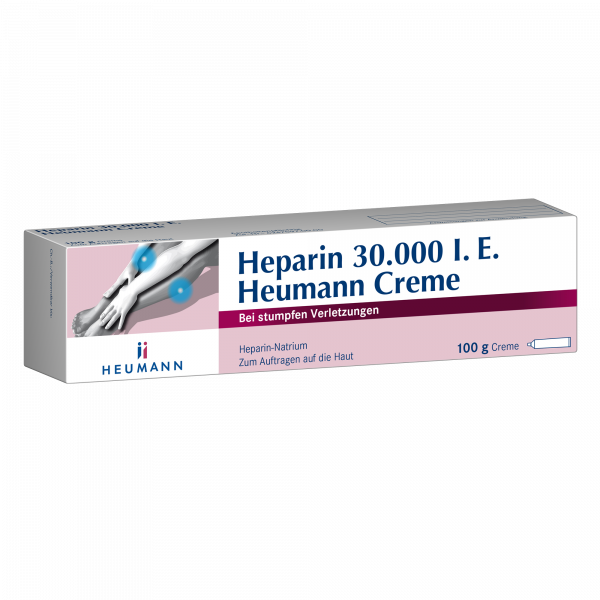 Heparin Heumann Creme enthält mit Heparin-Natrium einen Wirkstoff aus der Gruppe der Mucopolysaccharide. Diese Gruppe zeichnet sich durch gerinnungshemmende Aktivitäten aus und vermindert Schwellungen. Heparin Heumann Creme wird angewendet zur unterstützenden Behandlung bei akuten Schwellungszuständen nach stumpfen Verletzungen (Prellungen/Blutergüsse)