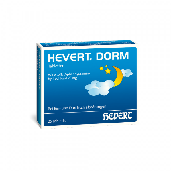 Hevert Dorm Wirkstoff: Diphenhydraminhydrochlorid. Anwendungsgebiete: Einschlaf- und Durchschlafstörungen. Zu Risiken und Nebenwirkungen lesen Sie die Packungsbeilage und fragen Sie Ihren Arzt oder Apotheker