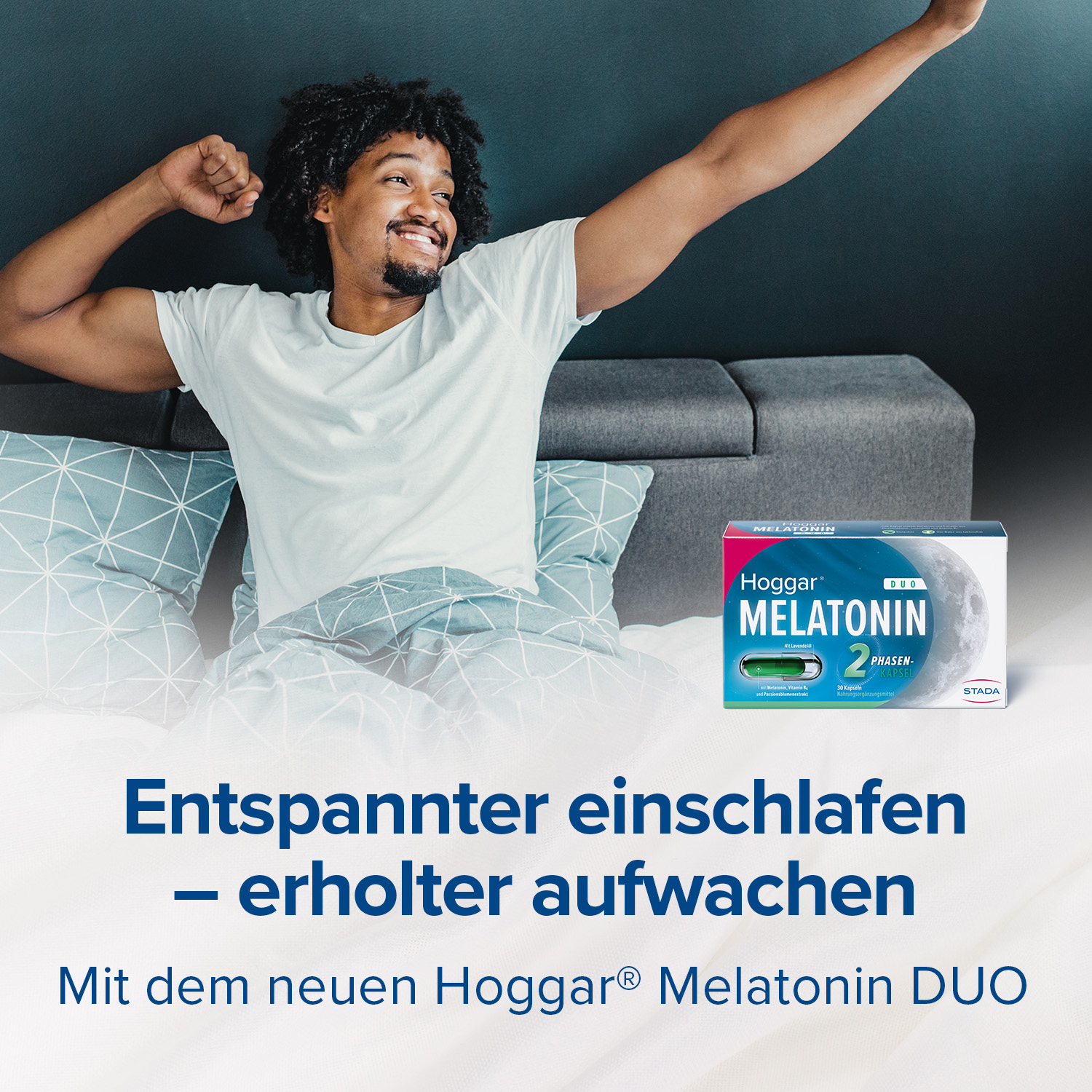 - Entspannter einschlafen, erholter aufwachen mit der innovativen Hoggar Melatonin DUO 2-Phasen-Einschlaf-Kapsel*