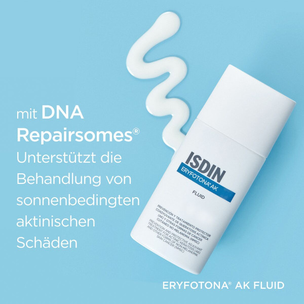 - Mit DNA Repairsomes, einer von ISDIN patentierten Technologie, die das mit aktinischer Keratose und Nicht-Melanom-Hautkrebs verbundene subklinische kutane Karzinomfeld reduziert und verbessert.