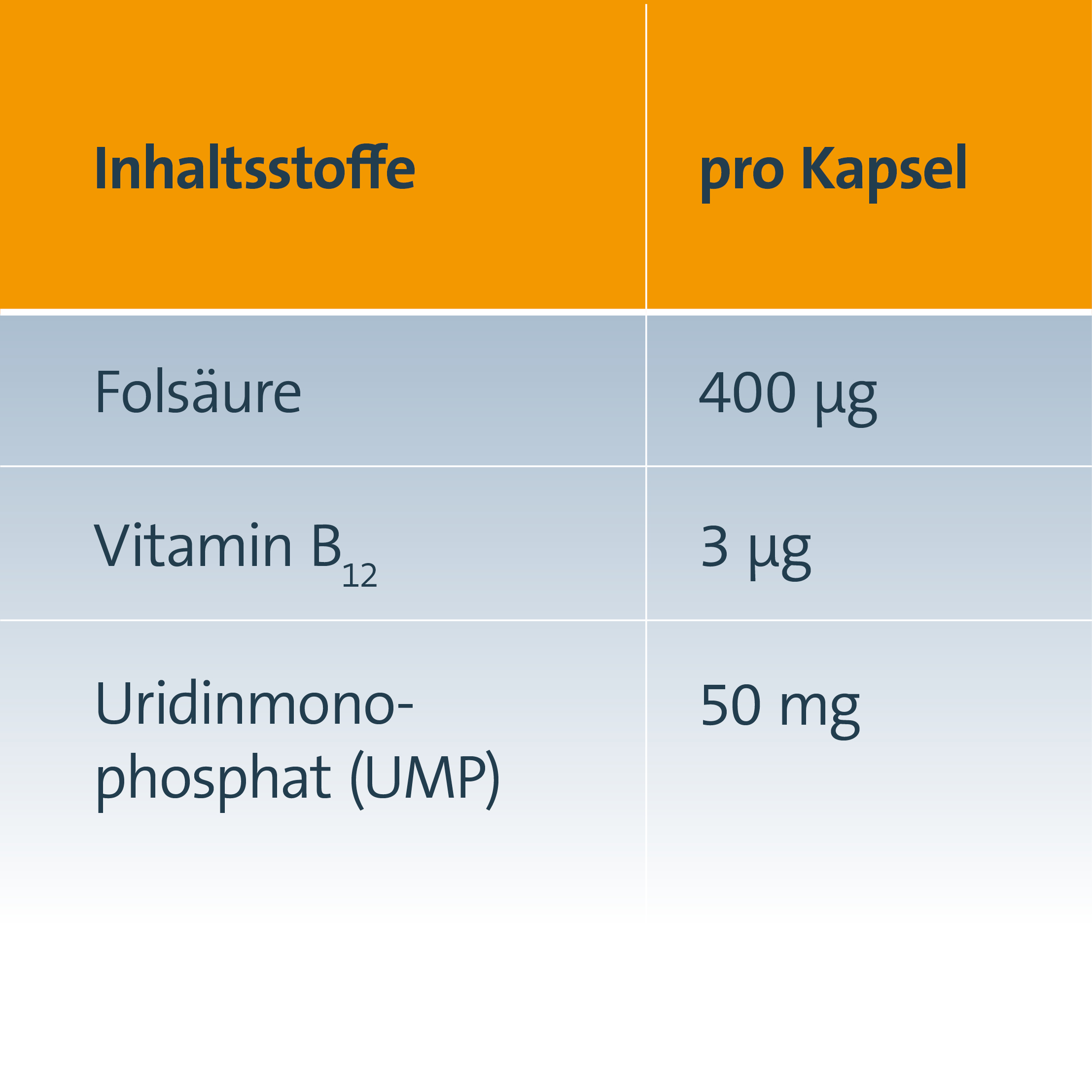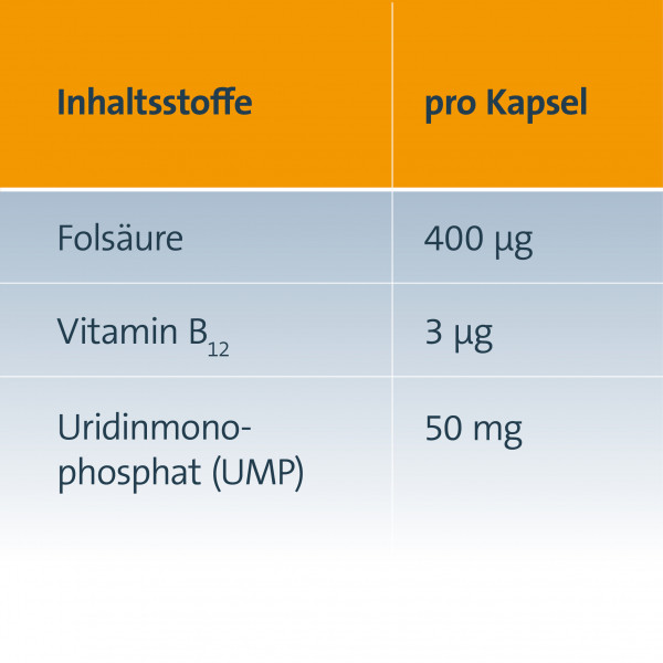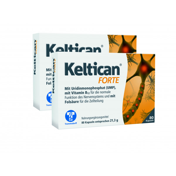 Keltican® forte ist ein Nahrungsergänzungsmittel mit Uridinmonophosphat, Folsäure und Vitamin B12