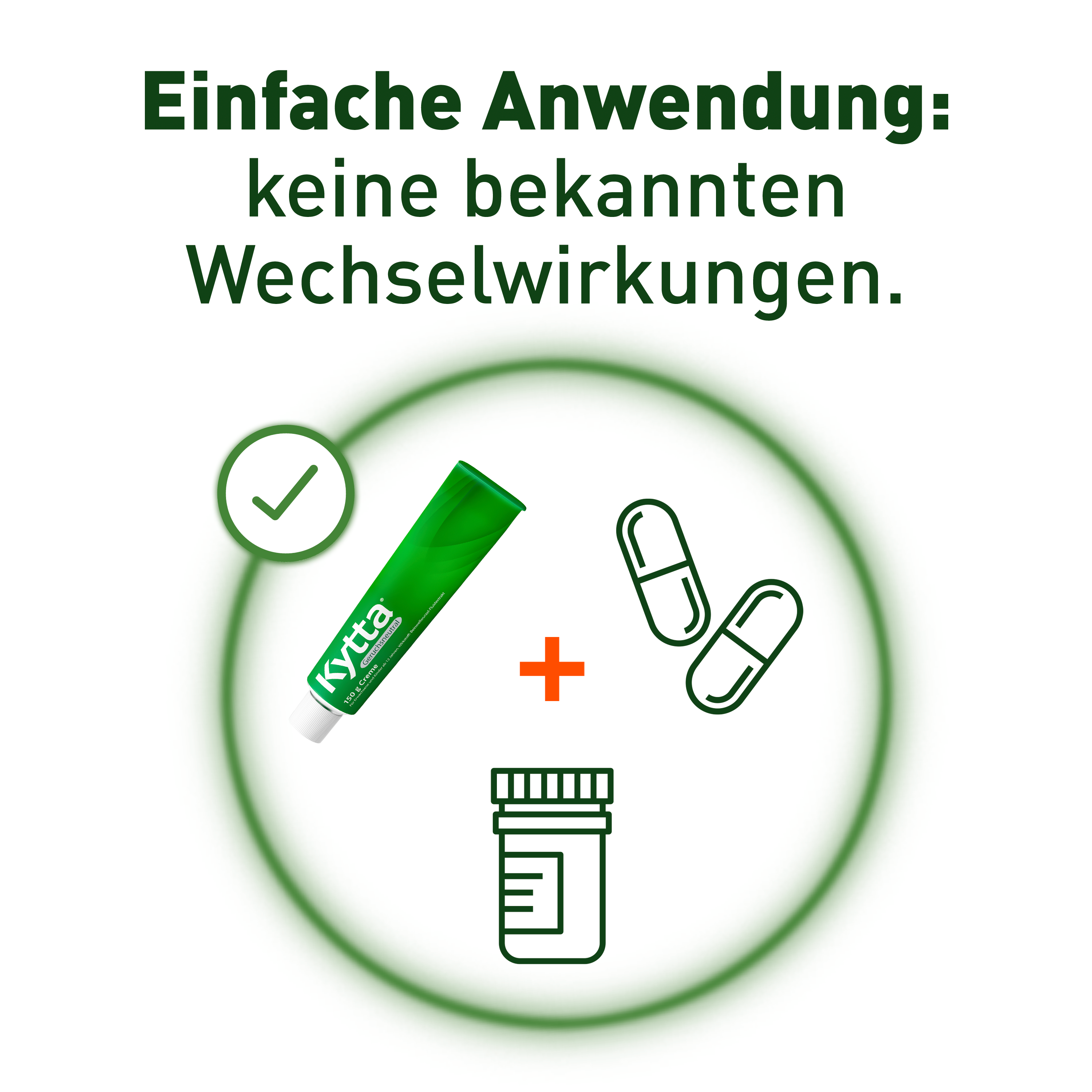Wenden Sie dieses Arzneimittel immer genau wie in dieser Packungsbeilage beschrieben bzw. genau nach Anweisung Ihres Arztes oder Apothekers an. Fragen Sie bei Ihrem Arzt oder Apotheker nach, wenn Sie nicht sicher sind. Die angegebene Dosierung sollte nur nach Rücksprache mit Ihrem Arzt überschritten werden. Die empfohlene Dosis beträgt: Erwachsene Tragen Sie, je nach Größe der zu behandelnden Körperstelle und nach Stärke der Beschwerden drei- bis viermal täglich einen 6 cm langen Salbenstrang (entsprechend jeweils ca. 2 g Kytta® Geruchsneutral) auf. Kinder ab 12 Jahren und Jugendliche Je nach Größe der zu behandelnden Körperstelle, zwei- bis dreimal täglich einen 4 - 6 cm langen Salbenstrang (entsprechend jeweils ca. 1,2 g bis 2 g Kytta® Geruchsneutral) auftragen. Art der Anwendung Zur Anwendung auf der Haut. Tragen Sie Kytta® Geruchsneutral auf die zu behandelnden Körperstellen auf und massieren Sie diese dann sorgfältig ein. Vor Anlegen eines Verbandes sollte einige Minuten gewartet werden, bis Kytta® Geruchsneutral in die Haut eingezogen ist. Die Anwendung eines luftdichten Verbandes (Okklusivverband) wird nicht empfohlen. 350 mg/g Creme Zur Anwendung bei Erwachsenen und Kindern ab 12 Jahren. Wirksto˜ : Beinwellwurzel-Fluidextrakt Lesen Sie die gesamte Packungsbeilage sorgfältig durch, bevor Sie mit der Anwendung dieses Arzneimittels beginnen, denn sie enthält wichtige Informationen. – Wenden Sie dieses Arzneimittel immer genau wie in dieser Packungsbeilage beschrieben bzw. genau nach Anweisung Ihres Arztes oder Apothekers an. – Heben Sie die Packungsbeilage auf. Vielleicht möchten Sie diese später nochmals lesen. – Fragen Sie Ihren Apotheker, wenn Sie weitere Informationen oder einen Rat benötigen. – Wenn Sie Nebenwirkungen bemerken, wenden Sie sich an Ihren Arzt oder Apotheker. Dies gilt auch für Nebenwirkungen, die nicht in dieser Packunsbeilage angegeben sind. Siehe Abschnitt 4. – Wenn Sie sich nach 3-4 Tagen nicht besser oder gar schlechter fühlen, wenden Sie sich an Ihren Arzt. Gebrauchsinformation: Information für Patienten 90037273 Dauer der Anwendung Erwachsene Die Anwendungsdauer richtet sich nach den Symptomen und der zugrundeliegenden Erkrankung. Bei akuten Muskelschmerzen im Bereich des Rückens, Verstauchungen, Prellungen und Zerrungen ist gewöhnlich eine Anwendung über 10 Tage ausreichend; bei Kniegelenksarthrose kann eine Anwendung bis zu 3 Wochen erforderlich sein. Kinder und Jugendliche Bei Kindern ab 12 Jahren und Jugendlichen nicht länger als 1 Woche anwenden. Sollten sich die Beschwerden bei Selbstbehandlung mit Kytta® Geruchsneutral nicht innerhalb von 3 – 4 Tagen bes- sern oder sogar verschlimmern, wenden Sie sich bitte an Ihren Arzt. Wenn Sie eine größere Menge Kytta® Geruchsneutral angewendet haben, als Sie sollten Fahren Sie mit der Anwendung fort, so wie es in der Dosierungsanleitung beschrieben ist. Wenn Sie versehentlich größere Mengen verschluckt haben, entfernen Sie die Reste aus Mund und Nase und wenden Sie sich an einen Arzt. Wenn Sie die Anwendung von Kytta® Geruchsneutral vergessen haben Wenden Sie nicht die doppelte Menge an, wenn Sie die vorherige Anwendung vergessen haben. Fahren Sie mit der Anwendung fort, so wie es in der Dosierungsanleitung beschrieben ist. Wenn Sie die Anwendung von Kytta® Geruchsneutral abbrechen Eine Unterbrechung oder vorzeitige Beendigung der Behandlung ist unbedenklich. Wenn Sie weitere Fragen zur Anwendung dieses Arzneimit- tels haben, wenden Sie sich an Ihren Arzt oder Apotheker.