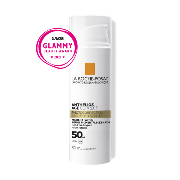 Die La Roche Posay Anthelios Age Correct LSF 50 Creme kombiniert täglichen Sonnenschutz & Anti-Age Pflege in Einem. Sie schützt vor Hautalterung und korrigiert gleichzeitig die Zeichen von Hautalterung in 4 Wochen. Falten und Pigmentflecken werden dank den kraftvollen Anti-Age Wirkstoffen Hyaluronsäure, Phe-Resorcinol und Niacinamid reduziert, und die Hautelastizität wird gestärkt. Dank einer neuen Generation der Sonneschutz-Technologie, CELLOX-B3 TECH, werden Zellschäden durch UV- & Infrarot-Strahlen sowie durch Umwelteinflüsse begrenzt.