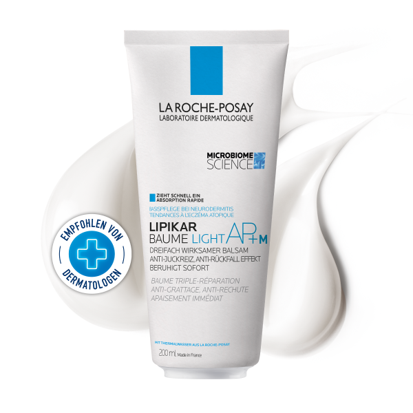 Die N°1 empfohlene Dermokosmetik Marke weltweit La Roche Posay LIPIKAR Baume Light AP+M mit Anti-Juckreiz- und Anti-Rückfall-Effekt für Babys, Kinder und Erwachsene: Die Pflege für empfindliche, trockene und zu Neurodermitis neigende Haut pflegt und beruhigt zugleich. Ein schöneres Leben für empfindliche Haut ohne Juckreiz. Die Kombination 5 aktiver Wirkstoffe der Körperlotion LIPIKAR Baume Light AP+M bringt das Mikrobiom ins Gleichgewicht und stärkt die Hautschutzbarriere: