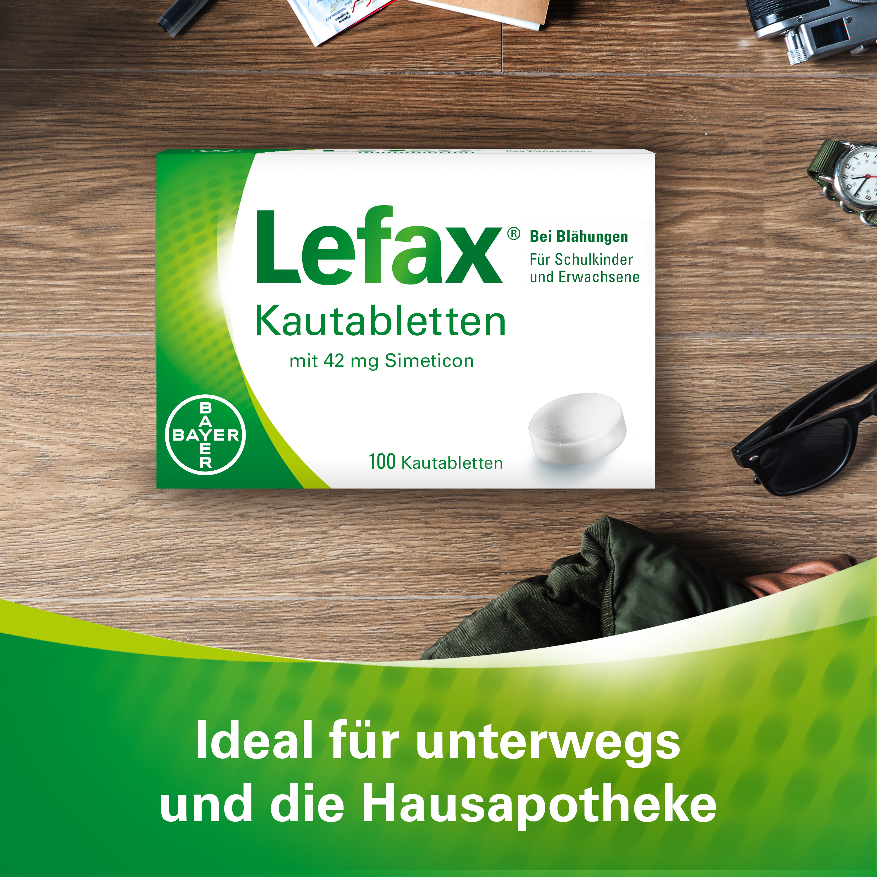 - Praktisch für unterwegs: Lefax® Kautabletten werden einfach zerkaut und ohne Wasser eingenommen.