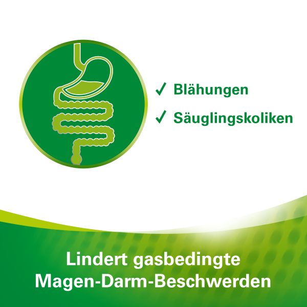Der Wirkstoff hilft gegen Blähungen. Diese werden durch aufgestaute Gase im Magen-Darm-Trakt verursacht, die in Form eines feinen Schaums vorliegen. Der Wirkstoff fördert den Abgang der Gase, indem er diesen Schaum zerstört.