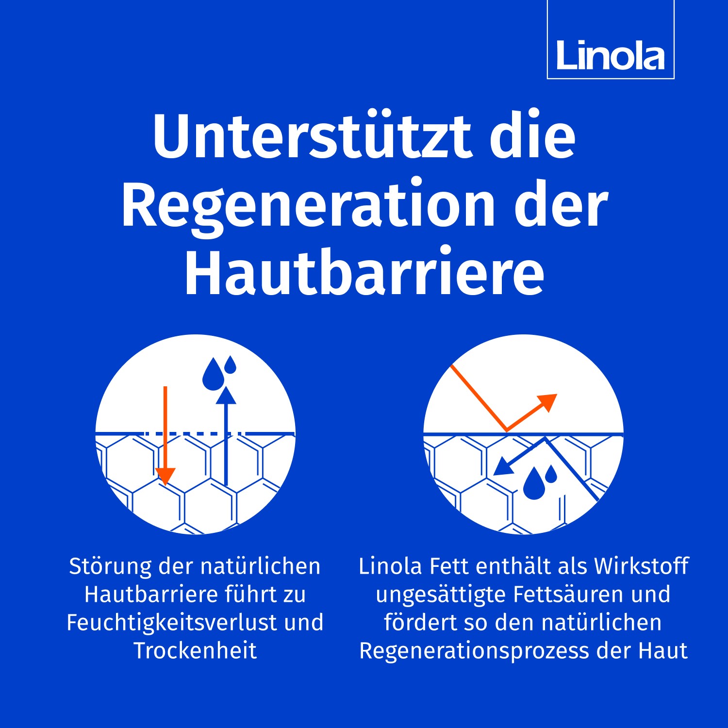 Linola Fett unterstützt die Behandlung der Neurodermitis im chronischen Stadium mit sehr trockener und juckender Haut. Linola Fett ist die ideale Fettcreme zur Behandlung sehr trockener, rissiger oder juckender Haut, wie sie z. B. bei Neurodermitis vorkommt. Linola Fett enthält als Wirkstoff ungesättigte Fettsäuren (u.a. Linolsäure), die für die Barrierefunktion der gesunden Haut notwendig sind.