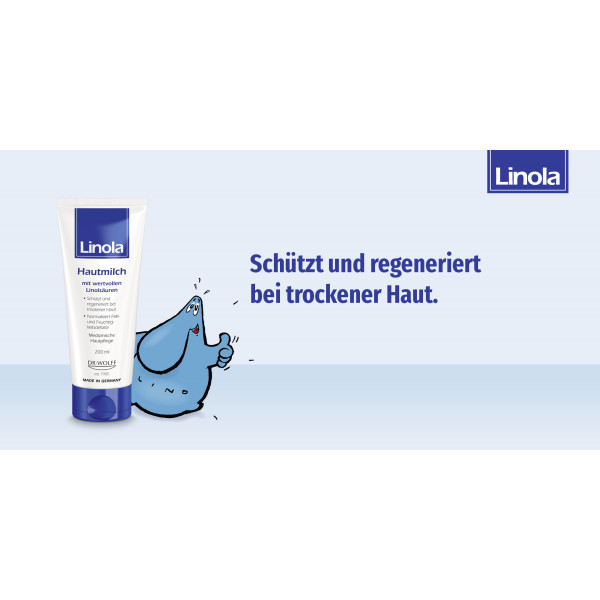 • Anwendung nach Behandlung von Hauterkrankungen (z. B. mit Kortikoiden) bis zur endgültigen Regeneration der Haut Natürlich kann Linola Hautmilch auch in der Schwangerschaft und Stillzeit sowie schon bei Kindern ab 3 Jahren angewendet werden.