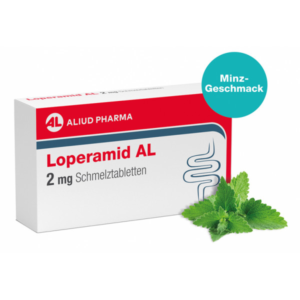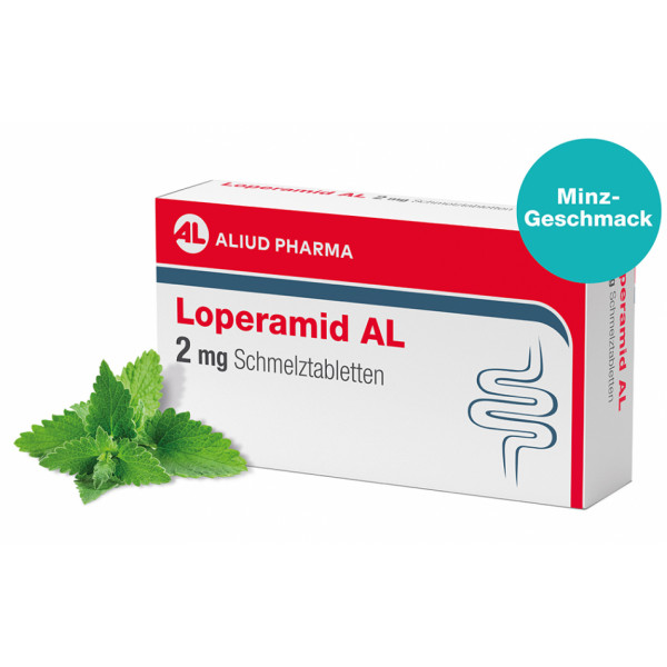 Loperamid AL 2 mg Schmelztabletten verlangsamen die beschleunigten Darmbewegungen bei Durchfall. Der Stuhl wird fester, die Häufigkeit der Stuhlent- leerungen kann reduziert und der Durchfall gestoppt werden. Praktisch für unterwegs: Die Schmelztabletten können ohne Wasser eingenommen werden, zergehen schnell auf der Zunge und schmecken nach Minze.