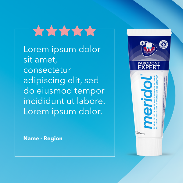 Für einen optimalen Schutz verwenden Sie die meridol Parodont Expert Zahnpasta in Ihrer täglichen Mund- und Zahnpflegeroutine zusammen mit der meridol Parodont Expert Zahnbürste, der meridol Parodont Expert Zahnspülung und der meridol Spezial-Zahnseide.