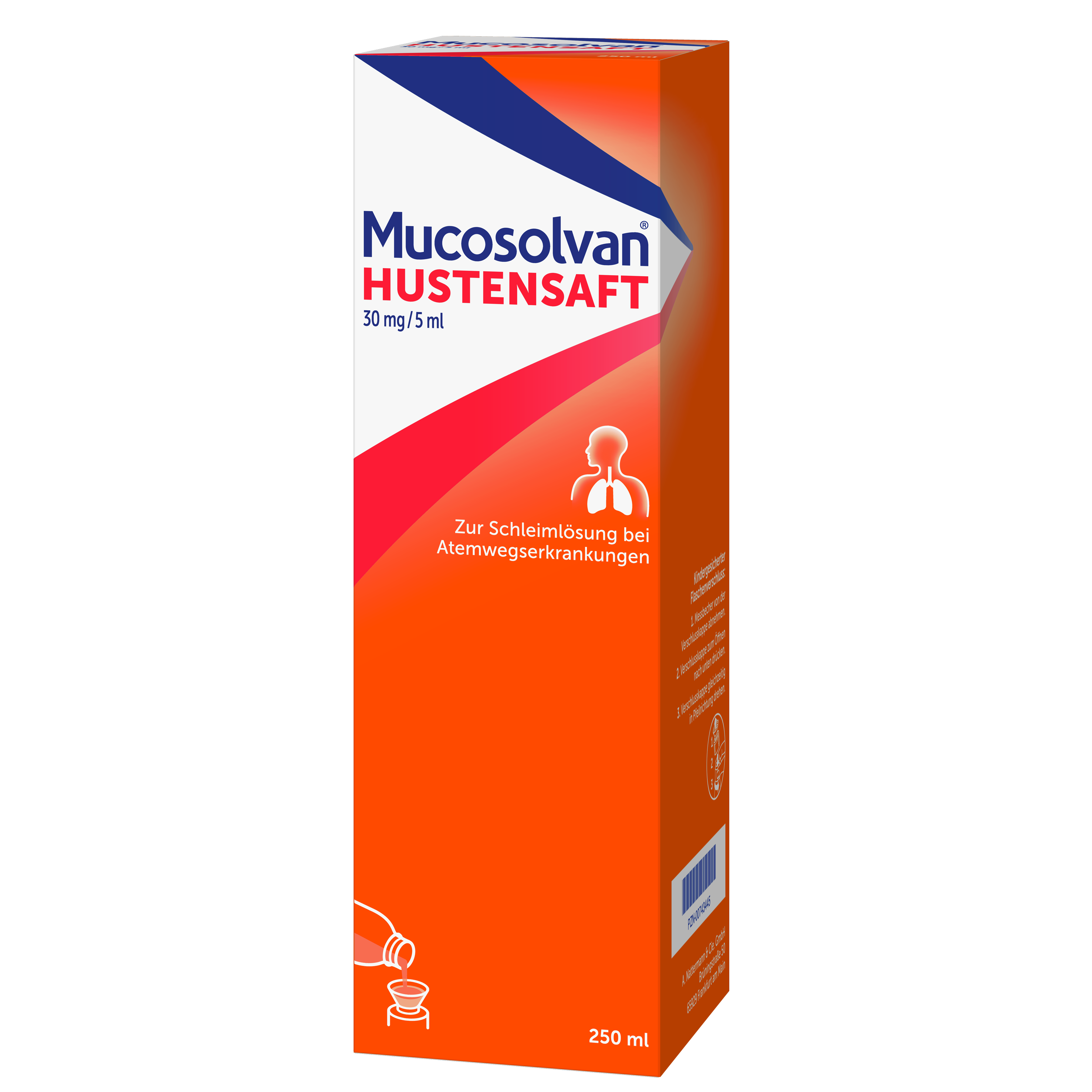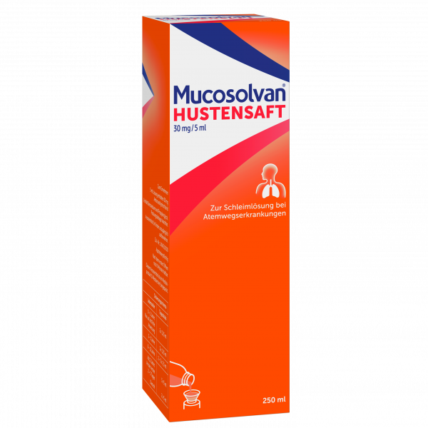 Bei Erkältungen und Bronchitis erleichtert die Einnahme von MUCOSOLVAN® Hustensaft das Abhusten von festsitzendem Schleim und lindert so den akuten Husten. In der beliebtesten Darreichungsform als Hustensaft unterstützt MUCOSOLVAN® die Selbstreinigung der Atemwege und lindert das Begleitsymptom Husten bei akuten und chronischen Atemwegsinfekten.