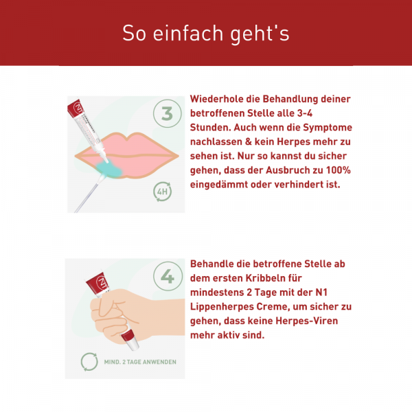 - Verhindert die Bläschenbildung und stoppt die Virenvermehrung
