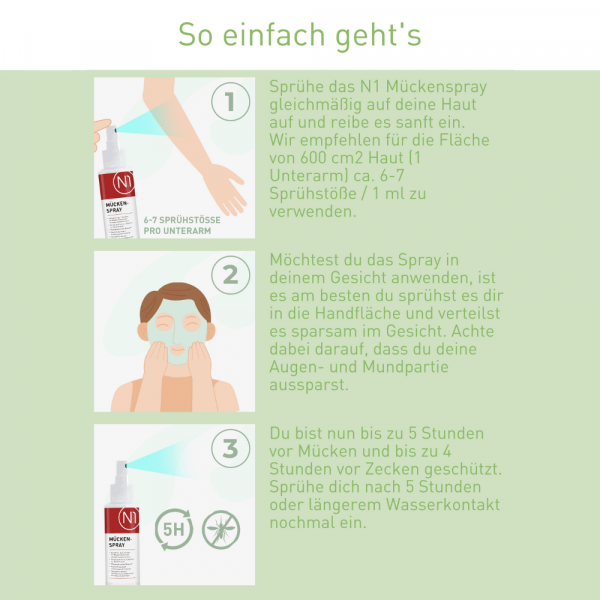 - Schützt bis zu 5 Stunden vor Mückenstichen und anderen Insektenstichen
