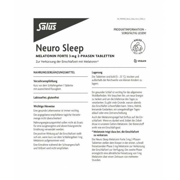 NEURO SLEEP Melatonin Forte 3mg 2-Phasen Tab.Salus