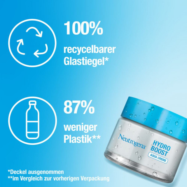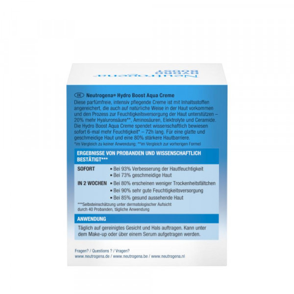 - Die parfümfreie & intensiv pflegende Neutrogena Hydro Boost Aqua Creme mit purer Hyaluronsäure verleiht glatte & geschmeidige Haut und stärkt die Hautbarriere um 80%