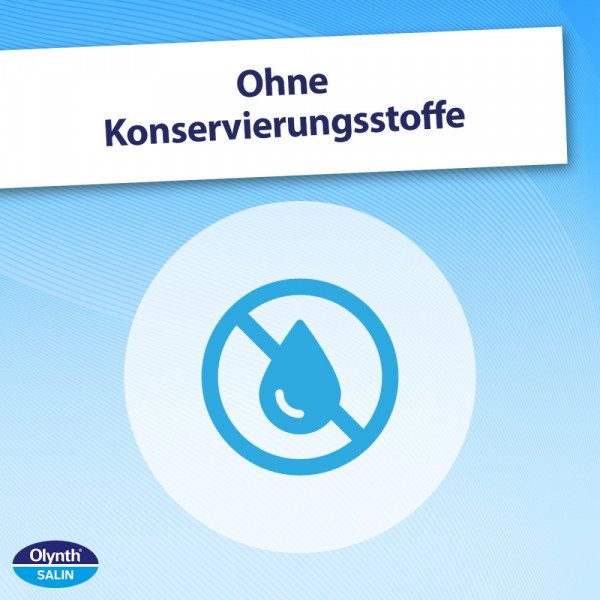 Olynth Salin Dosierspray enthält eine isotonische Salzlösung (0,9%) ohne Konservierungsstoffe mit Natriumchlorid sowie wichtigen Mineralstoffen. Olynth Salin Dosierspray wird angewendet zur unterstützenden Behandlung bei verstopfter Nase und zur sanften Reinigung und Befeuchtung der Nasenschleimhaut. Zur Verstopfung der Nase kann es durch Schnupfen/Erkältung, Allergien oder eine Nasenoperation kommen.