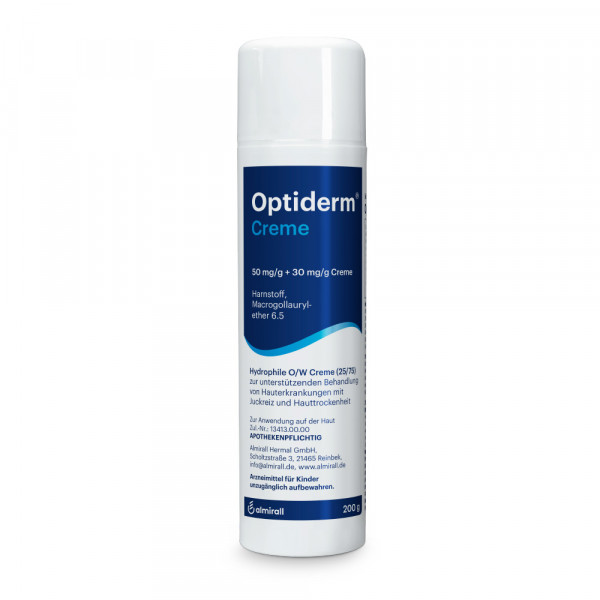 Optiderm enthält als einziges Arzneimittel eine Kombination aus den Wirkstoffen Urea (Harnstoff) und Polidocanol. Es pflegt die Haut und spendet intensiv Feuchtigkeit.