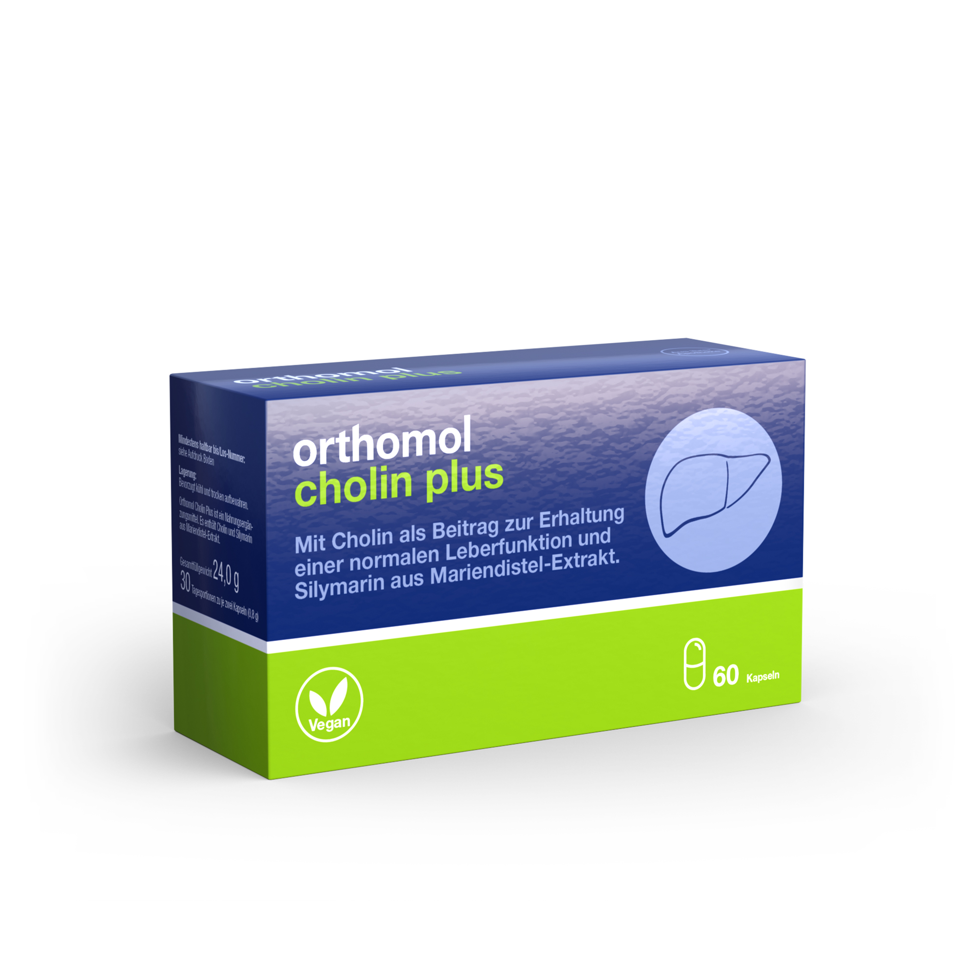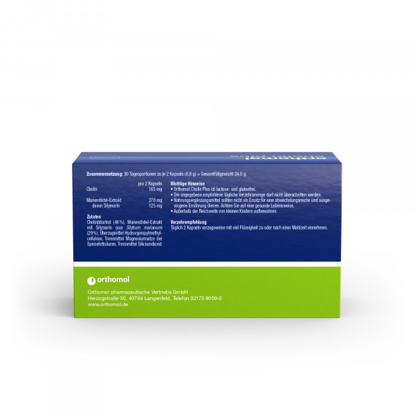 - Orthomol Cholin Plus ist ein Nahrungsergänzungsmittel. Es enthält Cholin als Beitrag zur Erhaltung einer normalen Leberfunktion und Silymarin aus Mariendistel-Extrakt.
