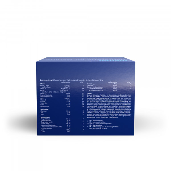 OrthomolNahrungsergänzungsmittel sind kein Ersatz für eine ausgewogene und abwechslungsreiche Ernährung und eine gesunde Lebensweise. Die angegebene empfohlene tägliche Verzehrsmenge darf nicht überschritten werden. Außerhalb der Reichweite von kleinen Kindern aufbewahren.