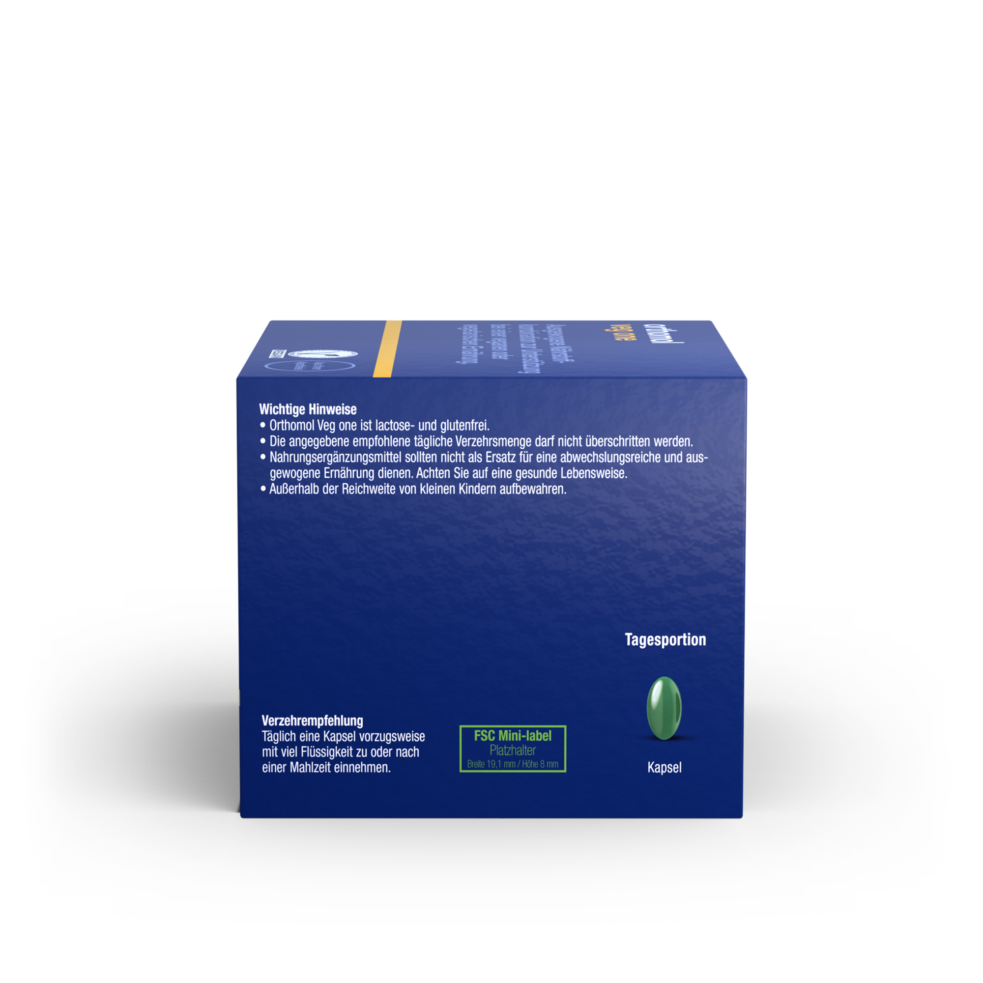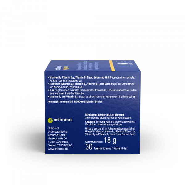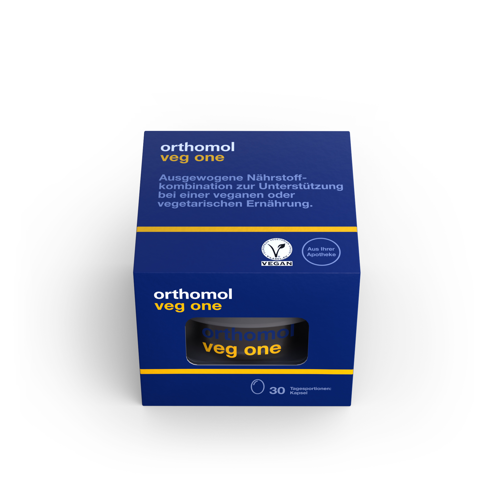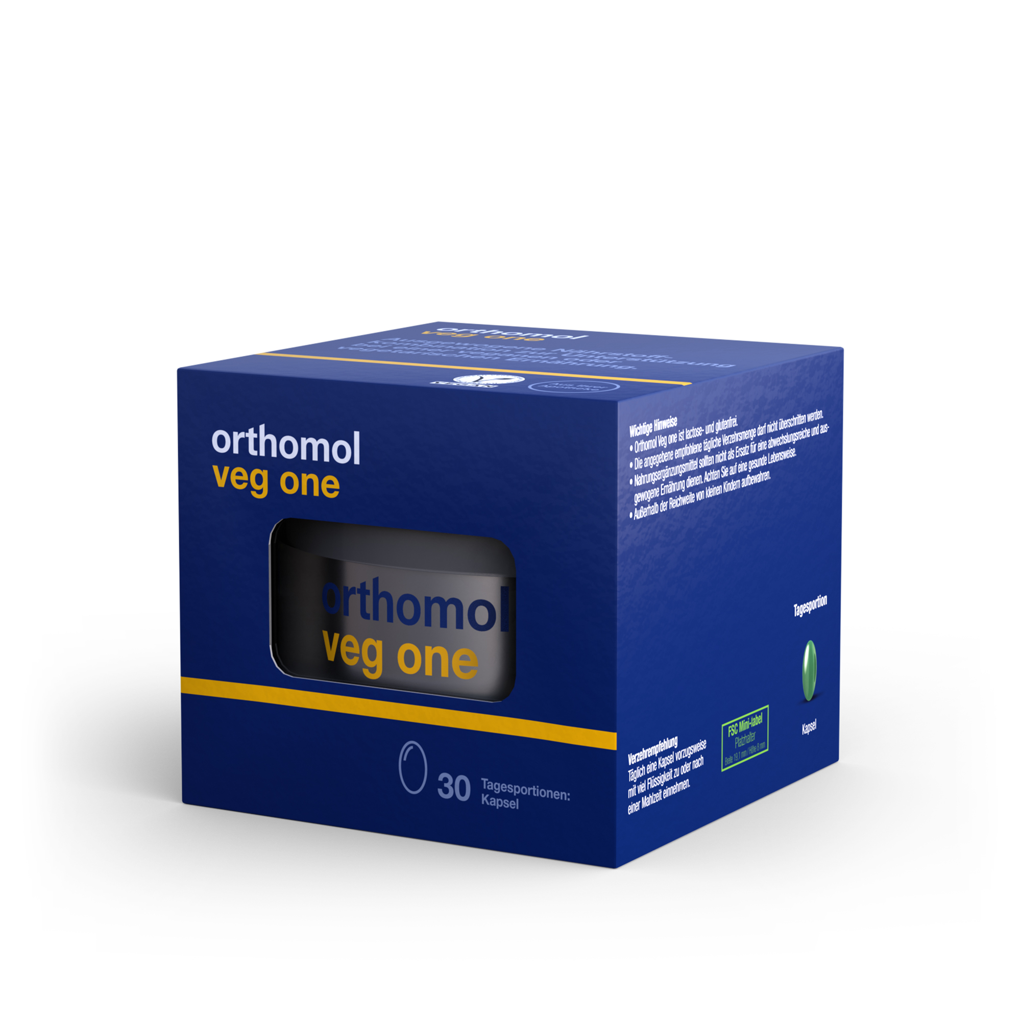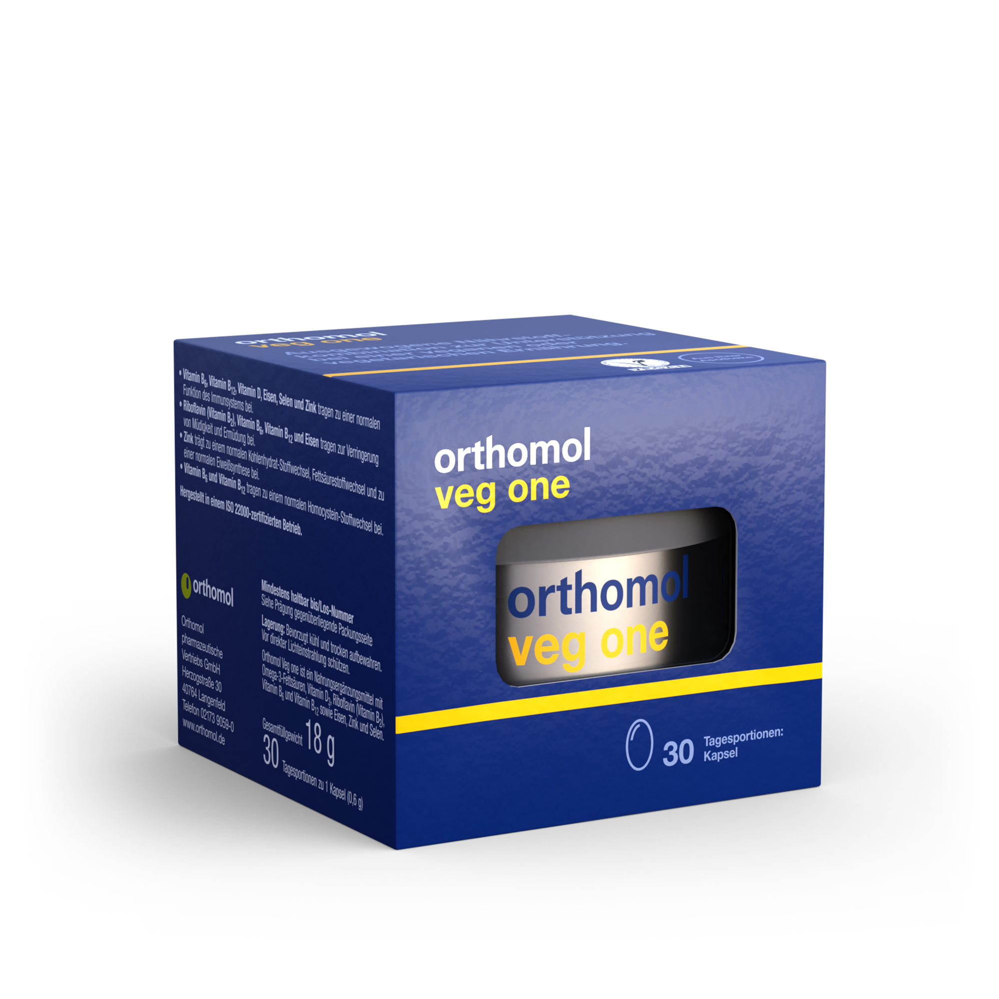 Orthomol Veg one ist ein Nahrungsergänzungsmittel zur Unterstützung bei einer veganen oder vegetarischen Ernährung.