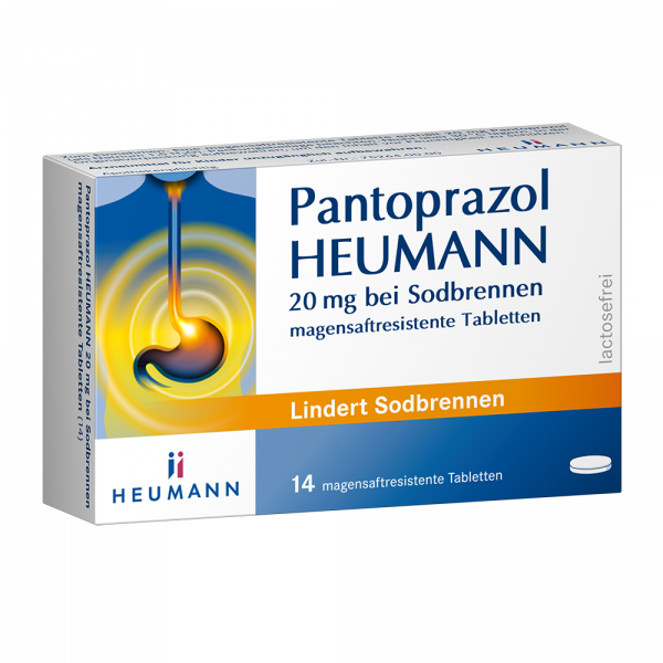 Pantoprazol HEUMANN 20 mg bei Sodbrennen magensaftresistente Tabletten (Wirkstoff: Pantoprazol) Anw.: Zur kurzzeitigen Behandlung von Refluxsymptomen (z. B. Sodbrennen, saures Aufstoßen) bei Erwachsenen. Stand: 12/2023 Zu Risiken und Nebenwirkungen lesen Sie die Packungsbeilage und fragen Sie Ihre Ärztin, Ihren Arzt oder in Ihrer Apotheke.