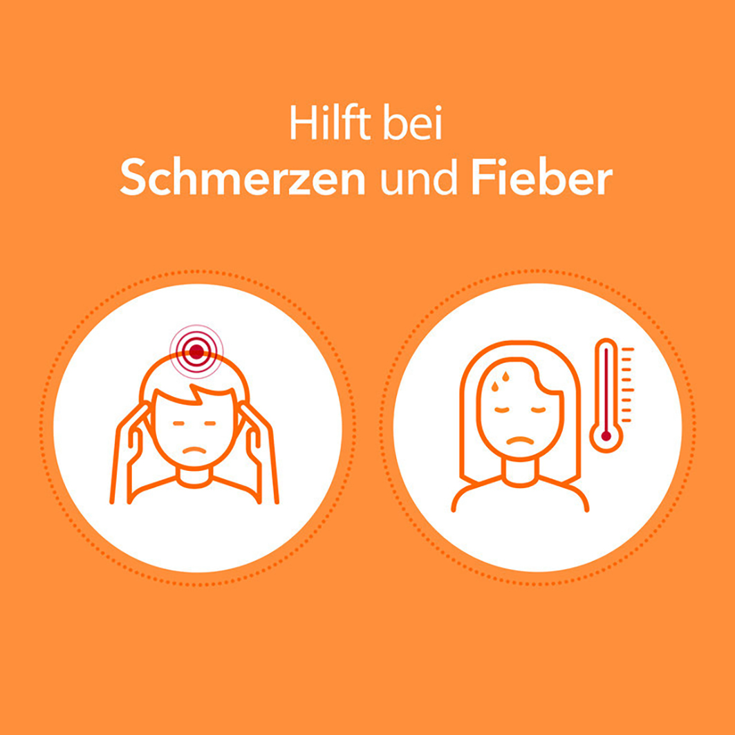 • Lindert leichte bis mäßige Schmerzen und reduziert Fieber