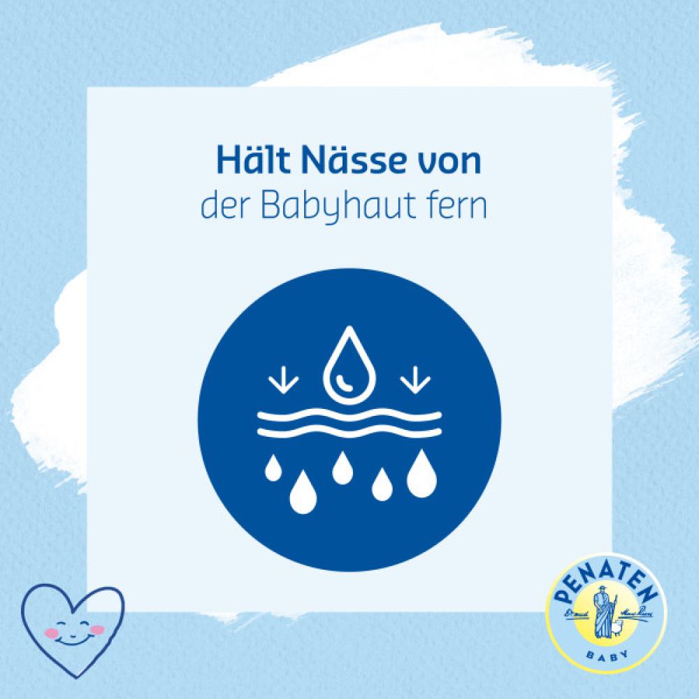 - Der Wundschutz beruhigt gereizte Haut und fördert das Abklingen von Rötungen ab der ersten Anwendung, der Nässeschutz hält Nässe von Babyhaut fern und der Hautschutz hinterlässt eine langanhaltende, sichtbare Schutzbarriere auf der Haut