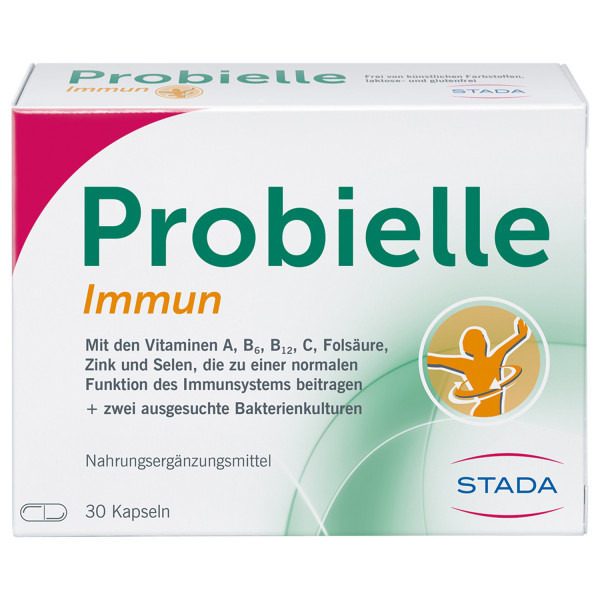 Nahrungsergänzungsmittel mit den Vitaminen A, B6, B12 und C, Folsäure, Zink und Selen sowie zwei ausgesuchten, im menschlichen Darm vorkommenden Bakterienkulturen
