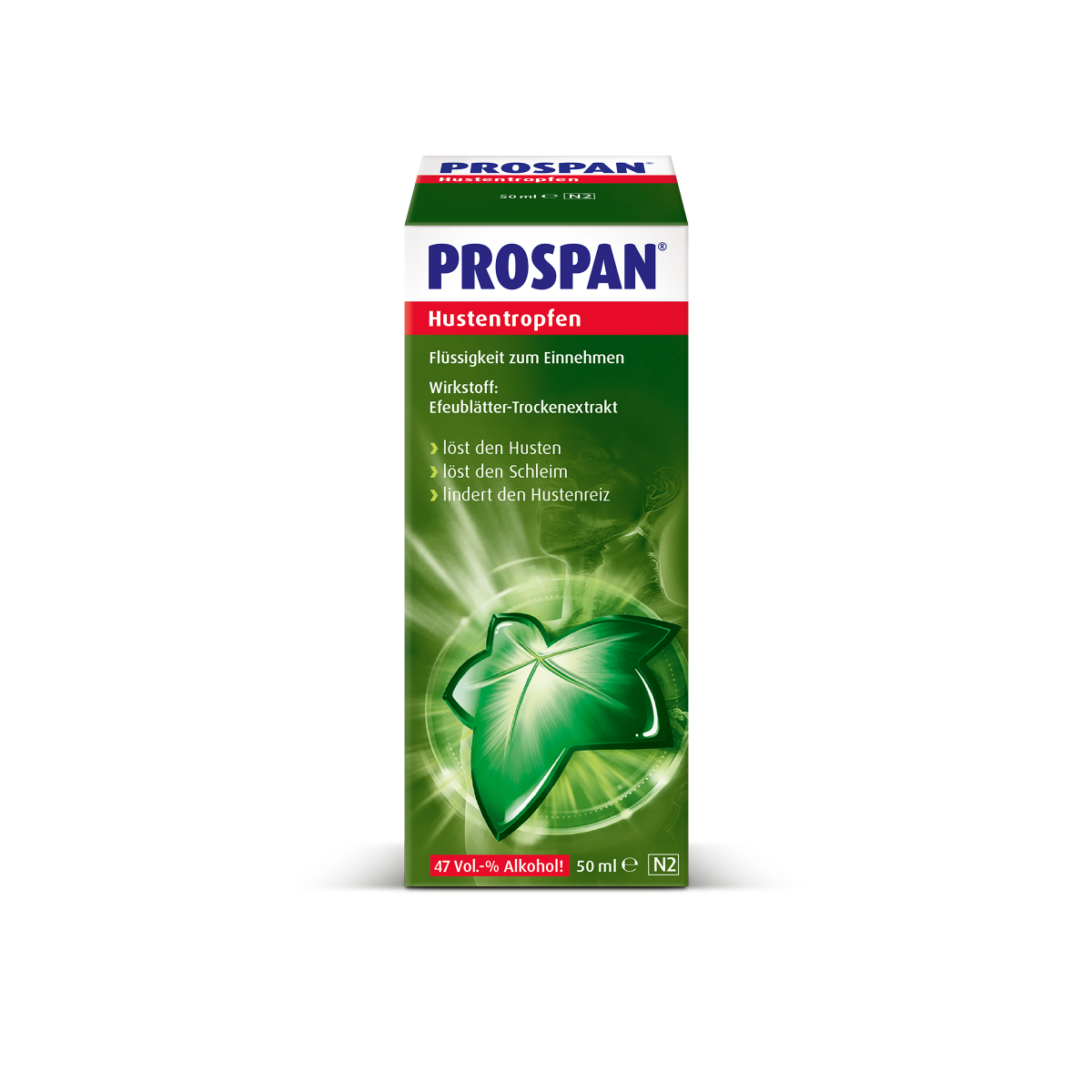 - PROSPAN®. STARK GEGEN HUSTEN: Kleine Flasche, große Wirkung. Die Prospan® Hustentropfen mit dem einzigartigen Efeu-Spezial-Extrakt EA 575® sind hochkonzentriert1 und wirken effektiv bei Husten und Bronchitis. Die Einnahme in Wasser, Tee oder Saft sorgt für zusätzliche Flüssigkeitszufuhr. Das ist grundsätzlich wichtig, besonders aber dann, wenn man hustet oder erkältet ist. Vertrauen Sie daher bei lästigem Husten und akuter Bronchitis auf den Klassiker mit der 4-fach Kraft: die Prospan® Hustentropfen.