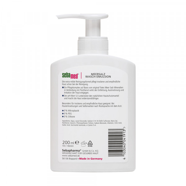 - ein Pflegekomplex auf Basis von original Totes Meer Salz Mineralien in Verbindung mit Panthenol wirkt der Entfettung, Austrocknung und Irritation der Haut entgegen