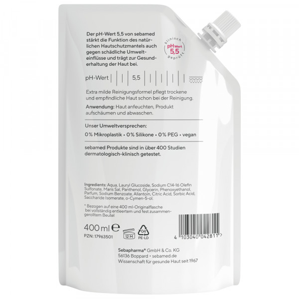 - FÜR GESUNDE HAUT: Der pH-Wert 5,5 von sebamed stärkt die Funktion des natürlichen auch gegen schädliche Umwelteinflüsse und Hautschutzmantels trägt zur Gesunderhaltung der Haut bei