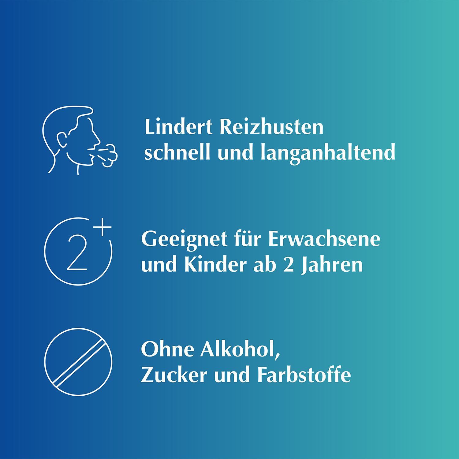 - Schnelle und langanhaltende Linderung von trockenem Reizhusten