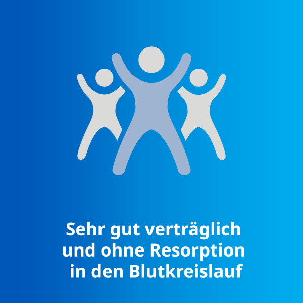 - Sehr gut verträglich und ohne Resorption in den Blutkreislauf