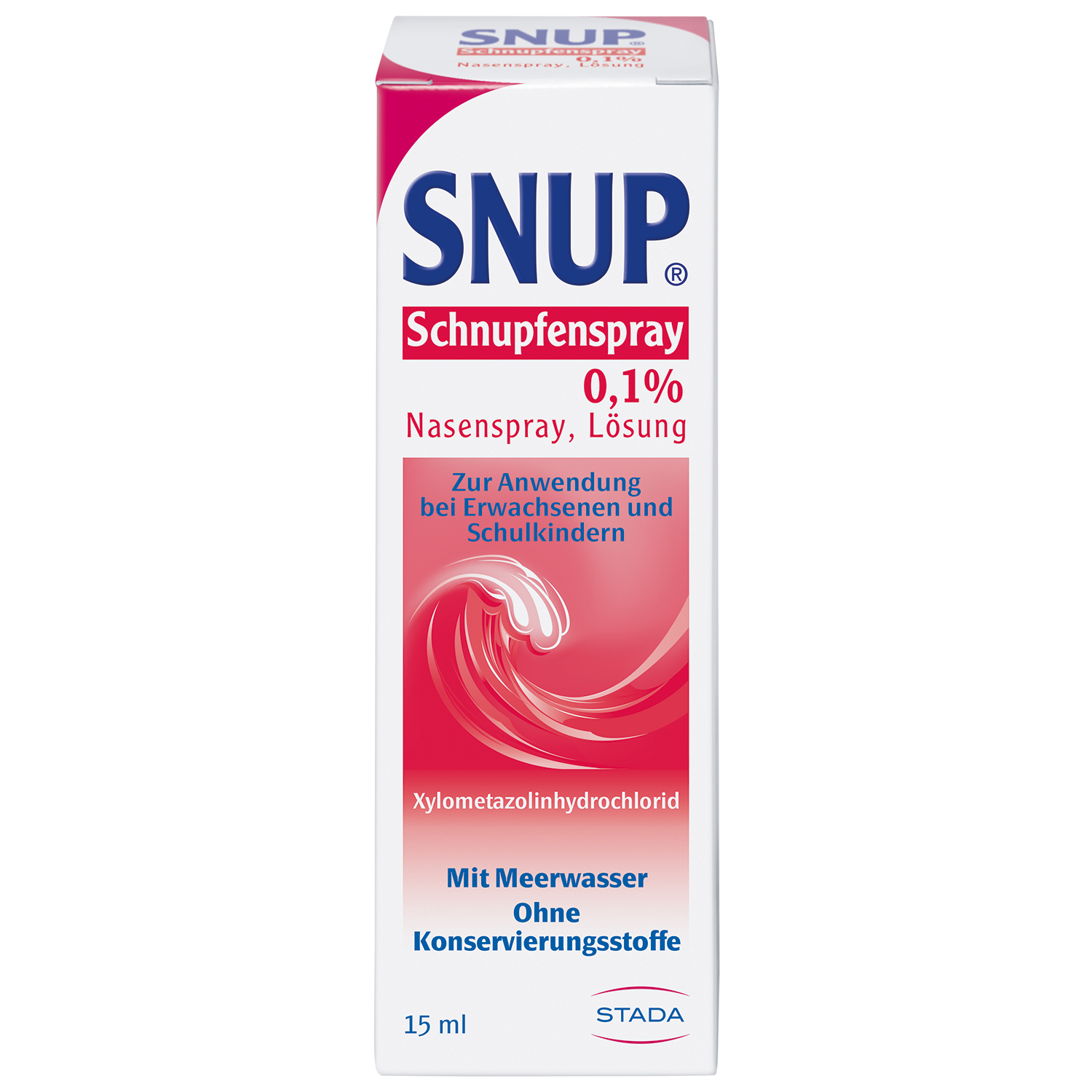 Erwachsene leiden durchschnittlich 3-4-mal jährlich an Erkältungsschnupfen. Eine laufende Nase oder erschwerte Atmung und ein durch eine verstopfte Nase gestörter Schlaf sind nicht nur unangenehm, ein Schnupfen kann unter Umständen auch Komplikationen wie Nasennebenhöhlenentzündungen oder Atemwegserkrankungen wie Bronchitis mit sich bringen. Snup® Schnupfenspray 0,1% ist sowohl als Schnupfenspray als auch als Heuschnupfenspray eine gute Wahl. Das praktische Schnupfenspray enthält isländisches Meerwasser und abschwellendes Xylometazolin. Diese einzigartige Kombination hilft die Nase zu befreien und befeuchtet die Nasenschleimhaut. Mit Snup® Schnupfenspray können sie schnell wieder frei durchatmen – und das praktische Dosierspray ist konservierungsmittelfrei.