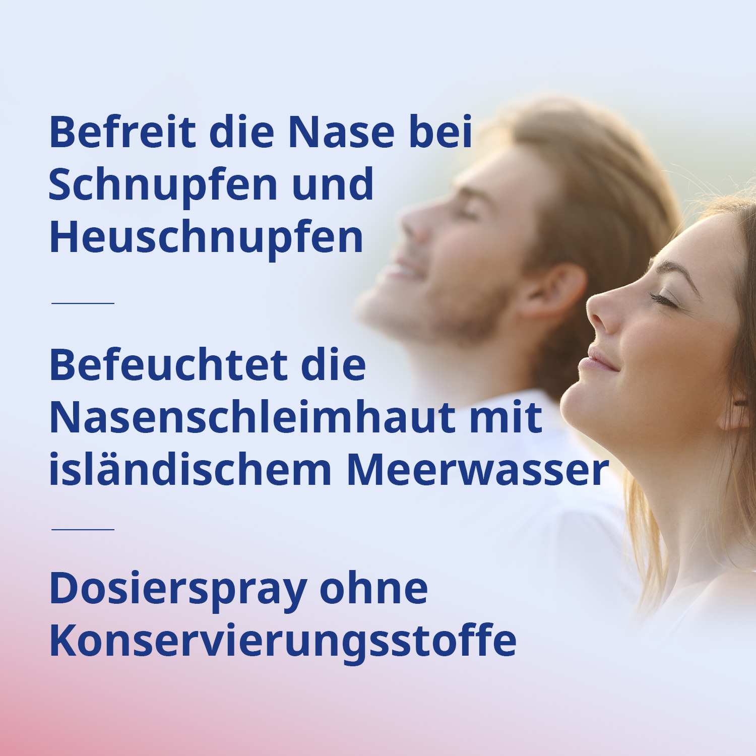 • Befeuchtet die Nasenschleimhaut mit isländischem Meerwasser