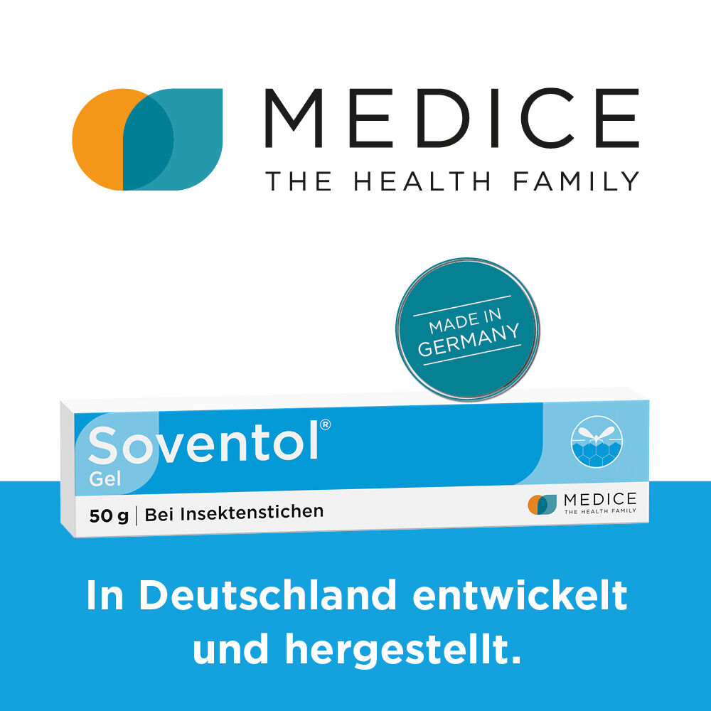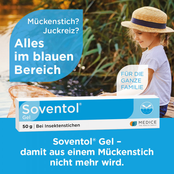 Bei Insektenstichen ist Soventol® Gel ein echter Klassiker für die ganze Familie! Es nimmt die Rötung und lindert den Juckreiz – schnell und langanhaltend zugleich. Denn nur Soventol® Gel enthält das Antihistaminikum Bamipin, das für seinen schnellen Wirkeintritt und den langen Wirkeffekt bekannt ist. Dies wurde in unterschiedlichen Studien bereits mehrfach gezeigt. Dank der sehr guten Verträglichkeit ist Soventol® Gel bereits für Kleinkinder geeignet.