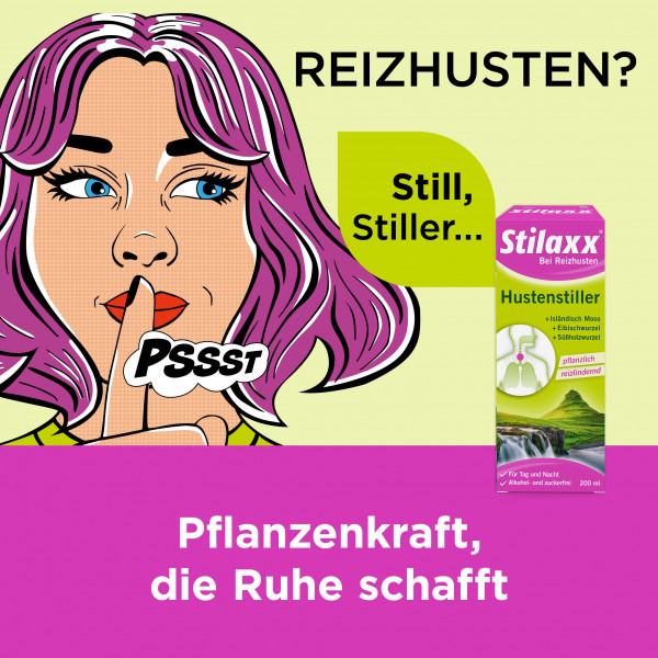 Für einen nachhaltigen Behandlungserfolg sollte die regelmäßige Einnahme des Stilaxx® Hustenstiller auch nach Abklingen des Reizhustens noch einige Tage fortgeführt werden.