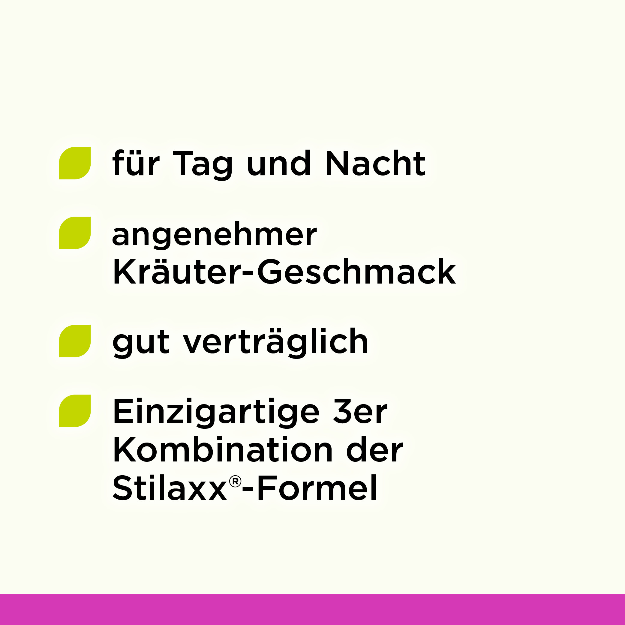 Für eine möglichst lange Reizlinderung sollte der Stilaxx® Hustenstiller morgens, mittags und abends eingenommen werden.