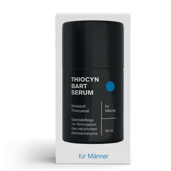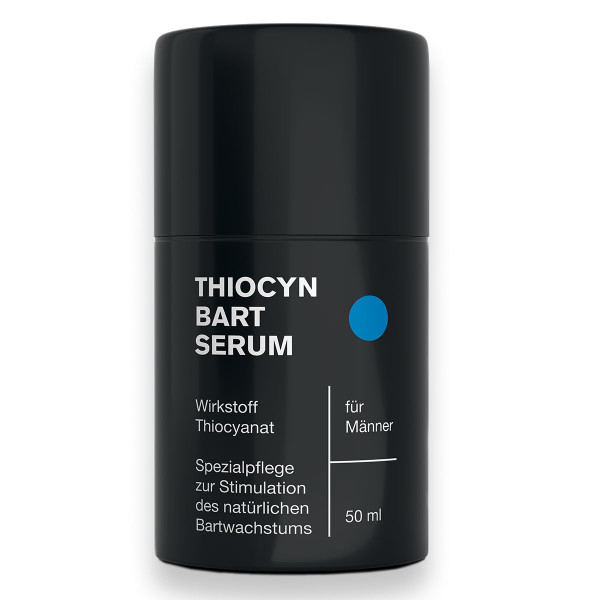 Das Thiocyn Bartserum 50ml mit dem körpereigenen Wirkstoff Thiocyanat ist die neu entwickelte Spezialpflege zur aktiven Stimulation des natürlichen Bartwachstums. Die patentierte Gel-Pflegerezeptur spendet wertvolle Feuchtigkeit, beruhigt die empfindliche Gesichtshaut nach der Rasur und macht die Barthaare geschmeidig. Der Bart wirkt deutlich voller, kräftiger und gepflegter.