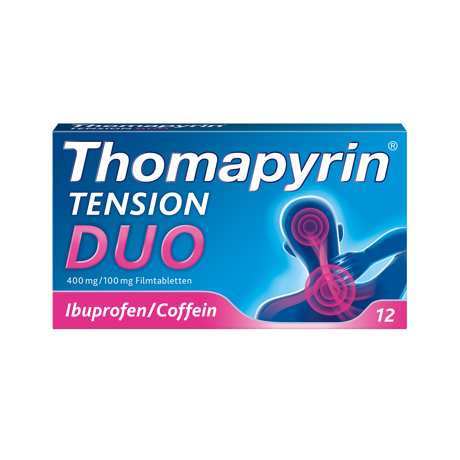 Ibuprofen gehört zu einer Gruppe von Arzneimitteln, die nichtsteroidale Antirheumatika (NSAR) genannt werden. NSAR sorgen für Linderung, indem sie die Art und Weise, wie der Körper auf Schmerzen und Fieber reagiert, verändern. Coffein gehört zu einer Gruppe von Arzneimitteln, die Stimulanzien genannt werden. Thomapyrin TENSION DUO wird zur kurzzeitigen symptomatischen Behandlung von akuten mäßig starken Schmerzen, wie Zahnschmerzen oder Kopfschmerzen, angewendet.