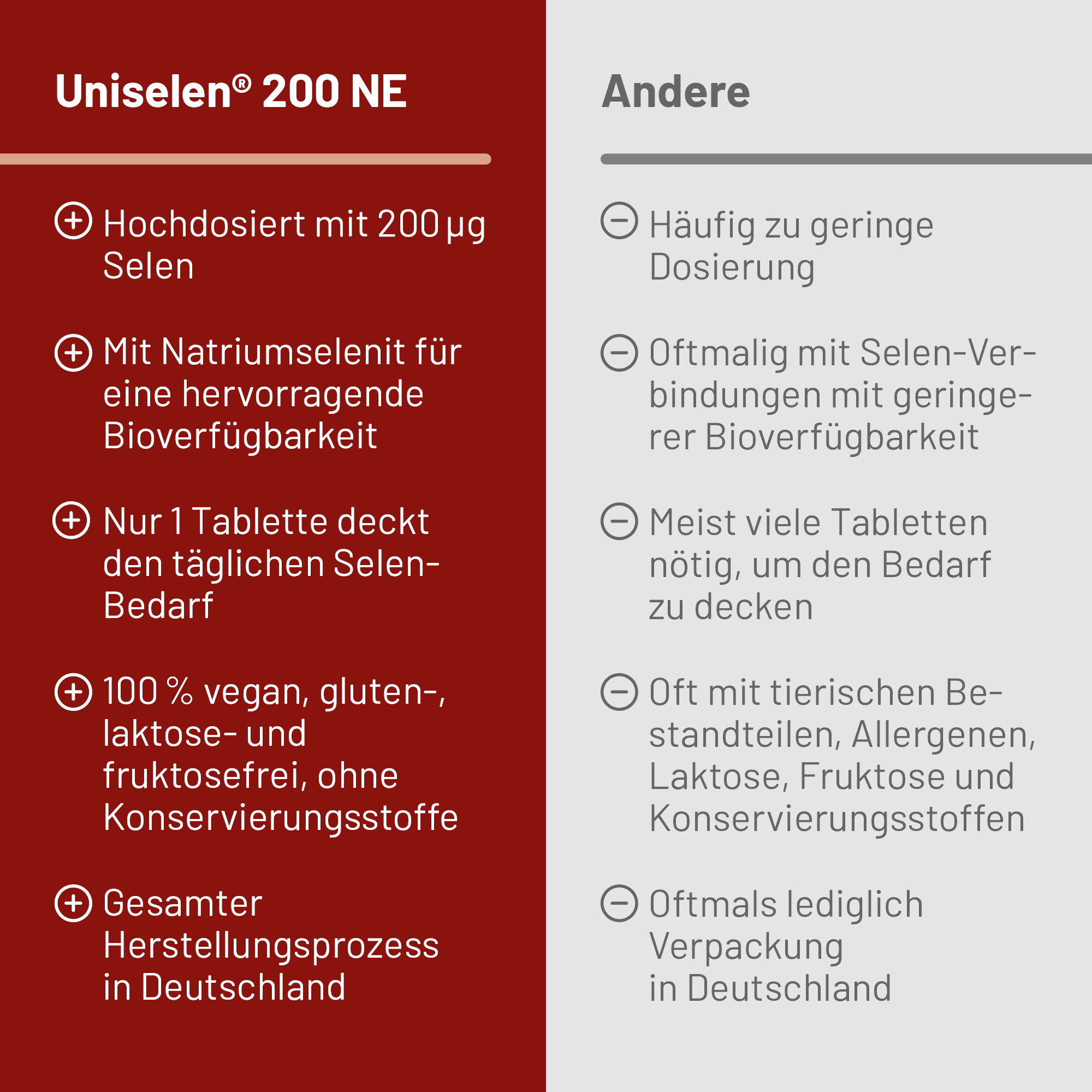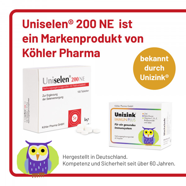 UNISELENNahrungsergänzungsmittel sind kein Ersatz für eine ausgewogene und abwechslungsreiche Ernährung und eine gesunde Lebensweise. Die angegebene empfohlene tägliche Verzehrsmenge darf nicht überschritten werden. Außerhalb der Reichweite von kleinen Kindern aufbewahren.