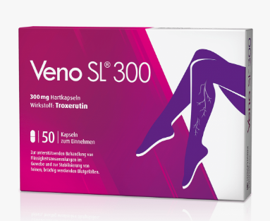 Venenleiden – eine VolkskrankheitLanges Stehen oder Sitzen behindert die Aktivität unserer Wadenmuskeln. Die Arbeit der Muskulatur in den Waden ist allerdings für unseren Blutkreislauf von großer Wichtigkeit. Wie eine Pumpe fördert sie das sauerstoffarme Blut gegen die Schwerkraft zum Herzen zurück. Gerät diese Pumpe ins Stocken, verbleibt das Blut länger in den Beinen und der Druck in den Venen steigt an. Dies hat zur Folge, dass die Venen mit der Zeit an Dichtigkeit verlieren. Sie werden durchlässig und Flüssigkeit dringt in das umliegende Gewebe ein. Das Resultat sind geschwollene, müde oder aber auch schwere, schmerzende Beine.Troxerutin – macht müde Beine wieder munter !Der Wirkstoff Troxerutin in Veno SL® 300 wird aus einem Inhaltsstoff des Japanischen Schnurbaums gewonnen. Diese Substanz unterstützt bestimmte, in der Gefäßwand befindliche Enzyme, deren Aufgabe die Abdichtung der Vene ist. So trägt das Troxerutin zur Entwässerung des Gewebes bei und verbessert die Durchblutung. Dabei ist die Verträglichkeit von Veno SL® 300 so gut, dass dieses Arzneimittel sogar während der Schwangerschaft eingesetzt werden kann.Veno SL® 300 – schont die Waden auf der LangstreckeAuch Ausdauersportler profitieren von Abdichtung der Gefäßwände durch Troxerutin. Flüssigkeitsansammlungen im Gewebe können nach intensiven Trainingseinheiten oder langen Läufen Ursache schwerer Beine sein und zuweilen sogar zu Krämpfen führen. Beschwerden, die durch eine Venenschwäche ausgelöst werden, wie Schwellungen, Jucken oder Schmerzen können durch Veno SL® 300 gelindert werden.