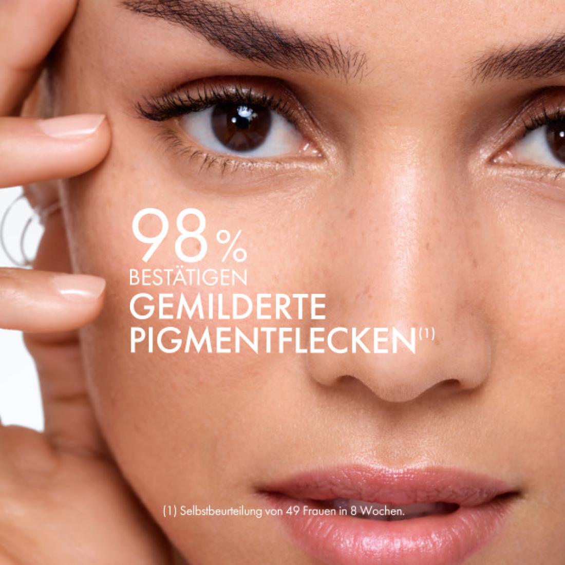 Externe Einflüsse können die Bildung von Hyperpigmentierungen, wie Pigmentflecken, begünstigen – Vichy LIFTACTIV SPECIALIST B3 Serum wirkt in unterschiedlichen Schichten der Haut, um dunkle Flecken, Anzeichen der Hautalterung und einen unebenmäßigen Hautton zu mildern. Die Serum-Formel setzt sich aus einer Kombination mit Niacinamid, Glykolsäure und effektiven Peeling Aktivstoffen zusammen. So fördert das Anti-Aging-Serum gegen Falten und Pigmentflecken die Erneuerung des Hautbildes, einen strahlenderen Teint und die Milderung von dunklen Malen sowie feinen Linien. Die Haut erscheint fester und wirkt geglättet. Pigmentflecken und Falten sind weniger sichtbar – für einen ebenmäßigeren Teint!